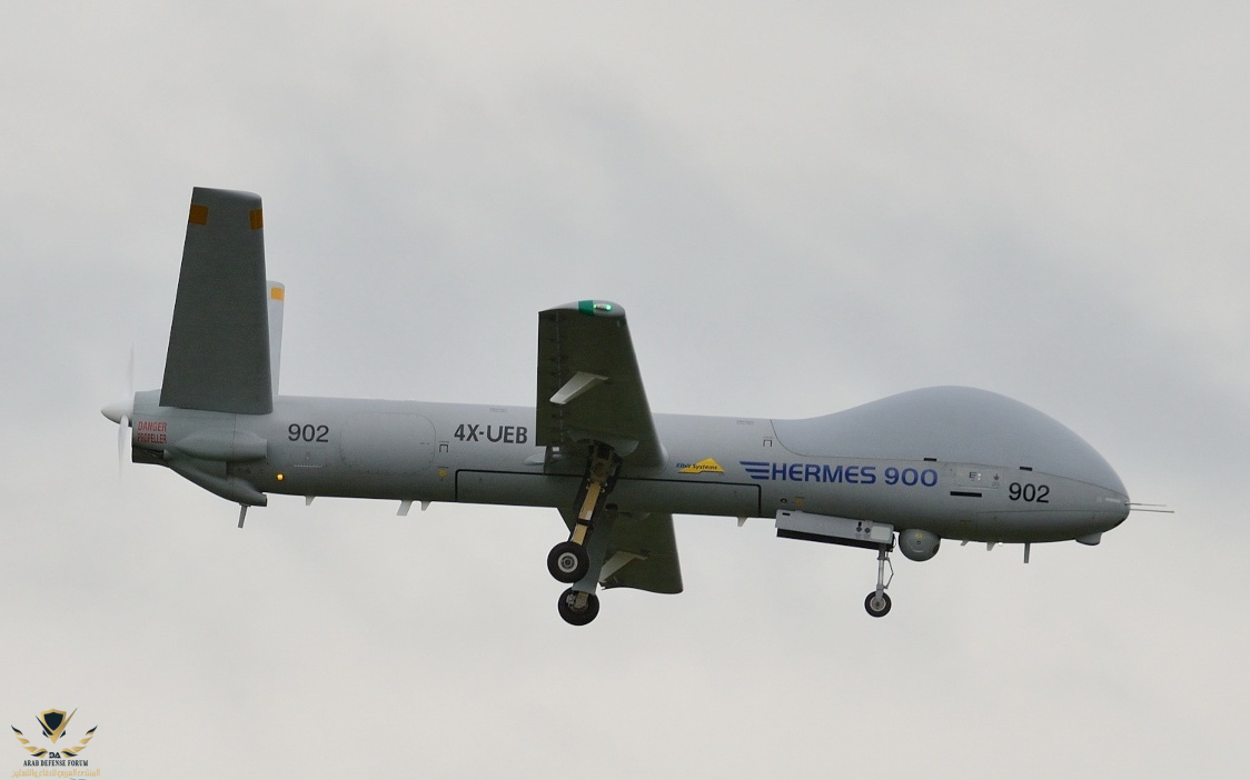 لحظة يا جماعة !! الاجنحة تشبه MQ-9 وليس Hermes 900 !!في البداية ظنتته ريبر ، لكن الذيل السفلي غير موجود فيه ، بعكس الهيرمس 900 اللي ما فيها ذيل سفلي