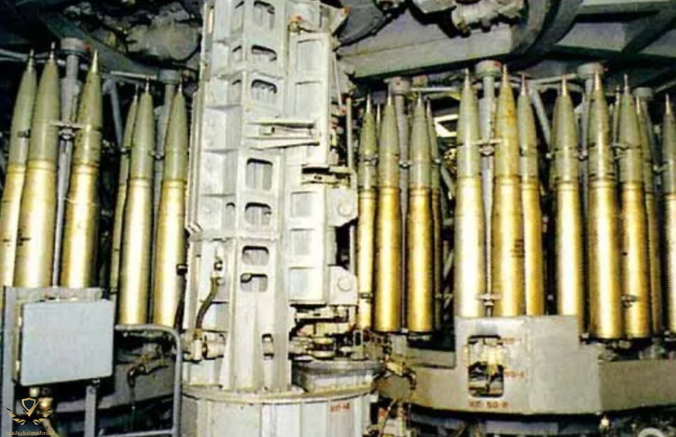 *يحمل نظام التلقيم ما مجموع 150/180قذيفه جاهزة الرمي أسفل البرج
