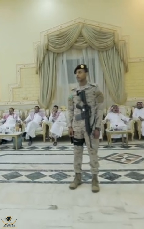 يبدو أن ابن المتحمي من هذه المجموعات التي نقلت للحرس الملكيبيني وبينك بعد البحث المطول الشخص هذا تبع وحدة الأمن الخاص بالاستخبارات والتسليح يختلف فالحرس الملكي يستخدمو الM6 SBR PSD بعيار 6.8x43 بينما اللي في الصورة M4 عادي بعيار 5.56x45