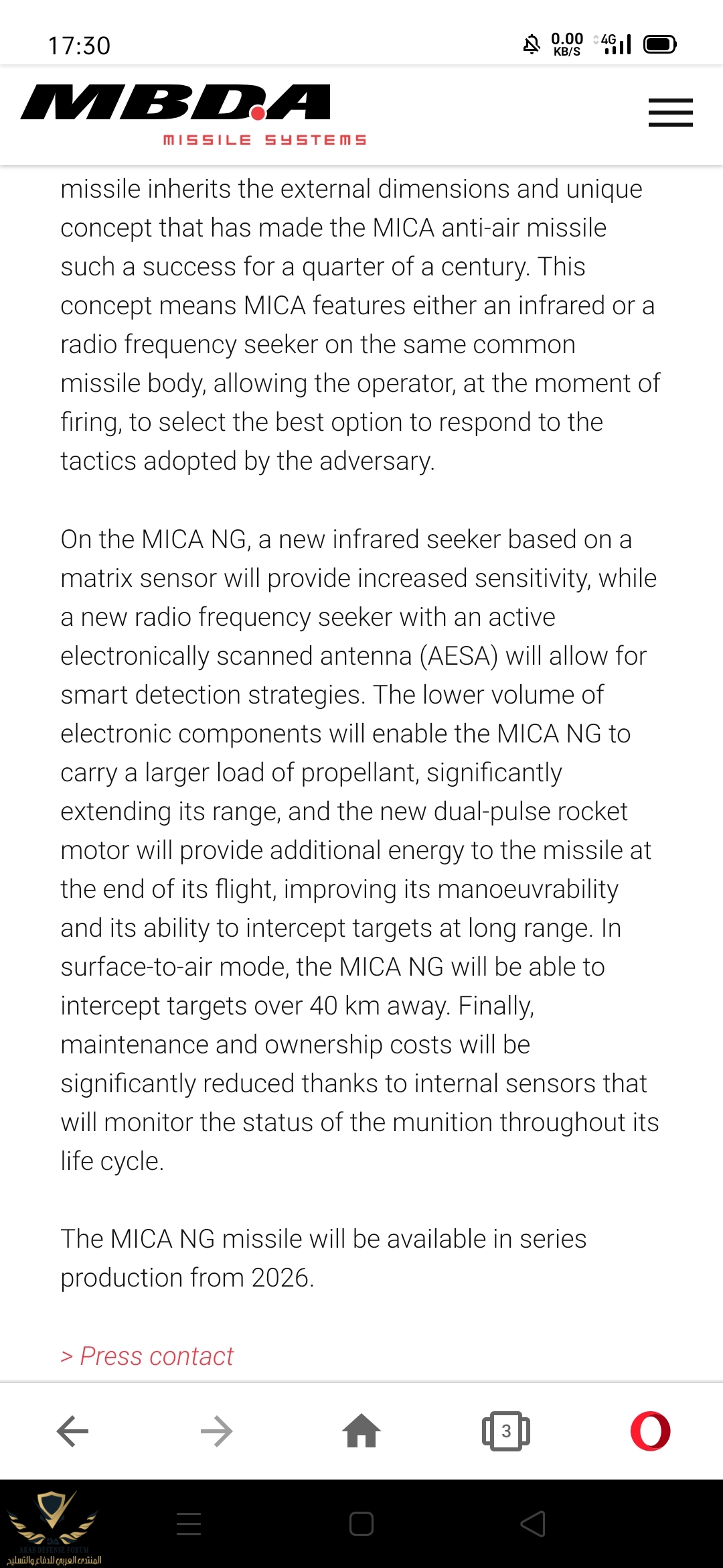 من موقع Mbda وأخر تجربة تمت لصواريخ ميكا NG الجديدة في شهر اكتوبر 2020 قالو الانتاج في 2026