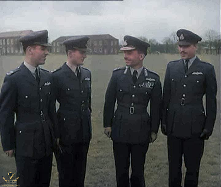 المرحوم الكابتن عصام ملحس (يمين) و جلالة الملك الحسين بن طلال رحمه الله (الوسط) وبجانبه احسان باشا شردم (يسار) والكابتن جاسر زياد (يسار) عام 1962 خلال تخريجهم من كلية سلاح الجو البريطاني في بريطانيا.