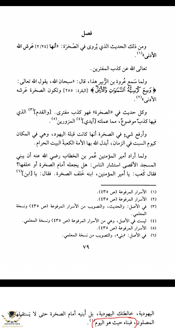 وإنكار عمر على كعب الأحبار وقوله له : ( يا ابن اليهودية ) لأن كعباً كان من أحبار اليهود وعلمائهم ، فلما أشار على عمر بن الخطاب ببناء المسجد خلف الصخرة كان في ذلك تعظيماً للصخرة حتى يستقبلها المسلمون في الصلاة ، وتعظيم الصخرة من دين اليهود لا من دين المسلمين .