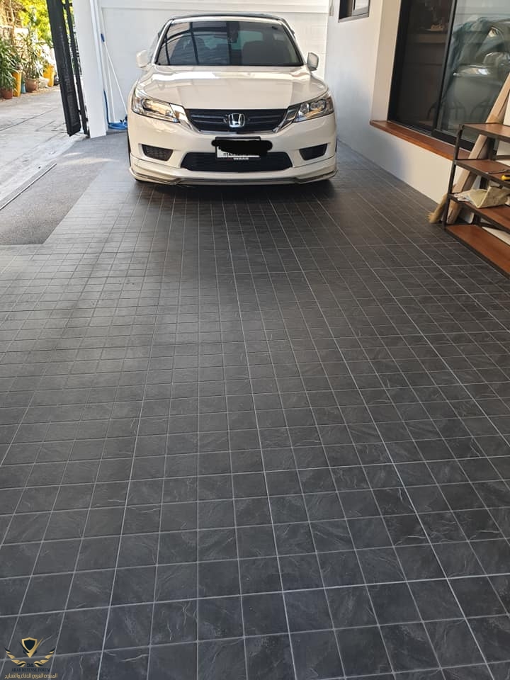 ثم رصيف (حكومي) من البلاط الاسود بعرض سياره من بداية الشارع لنهايته (تضعه الحكومه لجميع الفلل والعمائر) كمساحة ركن سيارات