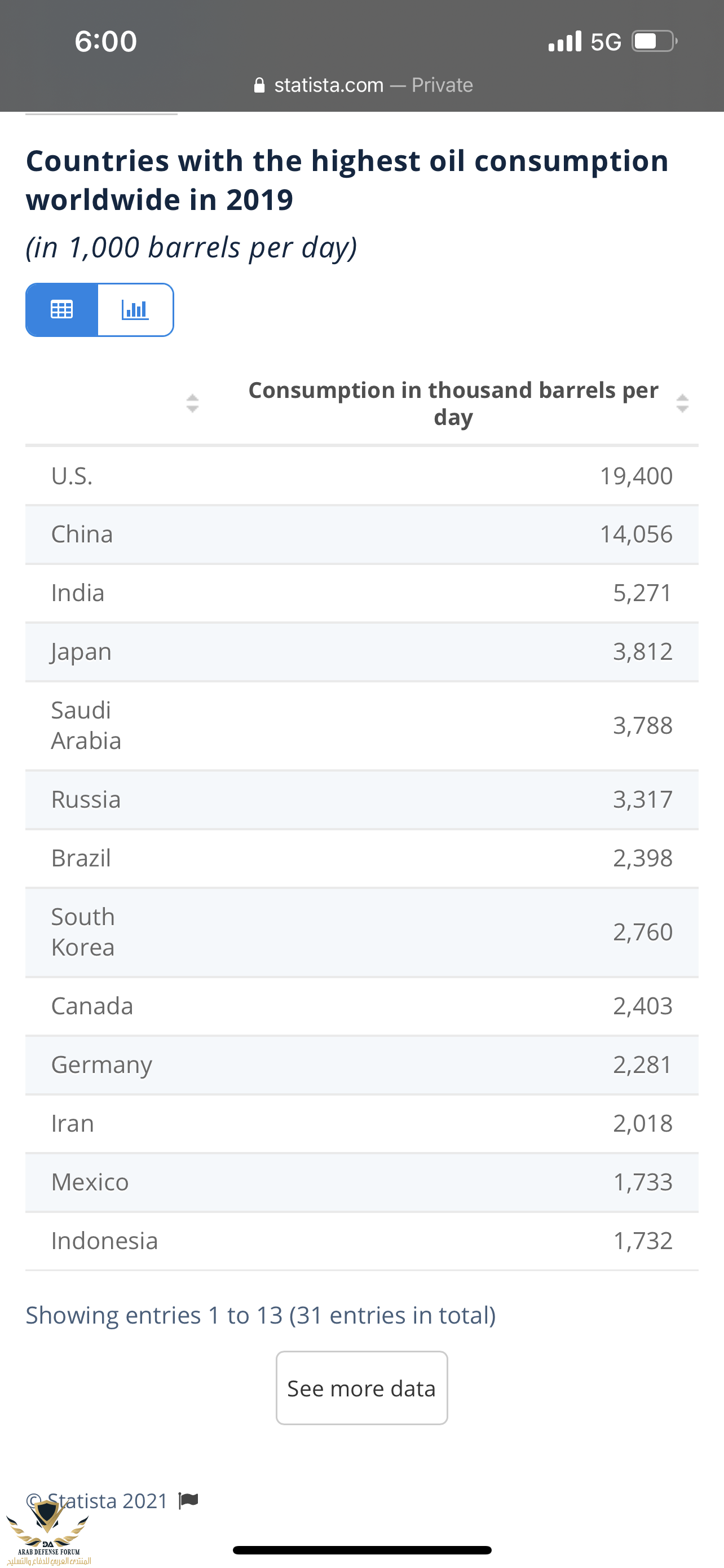 الرجال للاسف معلوماته مضروبةمايحتاج ابحث، الرجال حط لك استهلاك مصر والسعودية من البنزين والآدمي الذكي المفروض مايروح يجيب لي كم استهلاك النفط كامل بالبلد ويقول خامس اكبر مستهلك للنفط بالعالم، فهمت؟