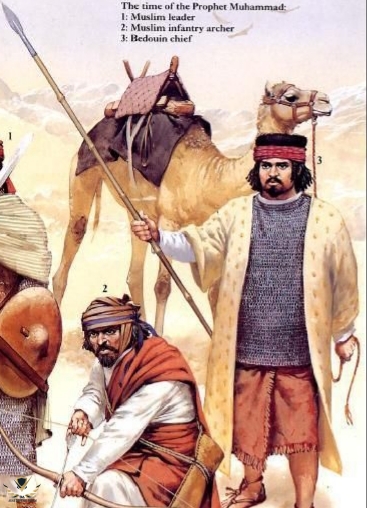 رسم تخيلي لخالد بن الوليد وهوى يبارز أحد القادة الساسانيين خالد بن الوليد يحمل ترس من الجلد المقوى ودرع من رقائق الجلد المقوى تحته سترة من السلاسل وخوذة يمتد منها غطاء لسلاسل يحمي الوجه والرقبة مع سيف عربي مستقيم بحدين