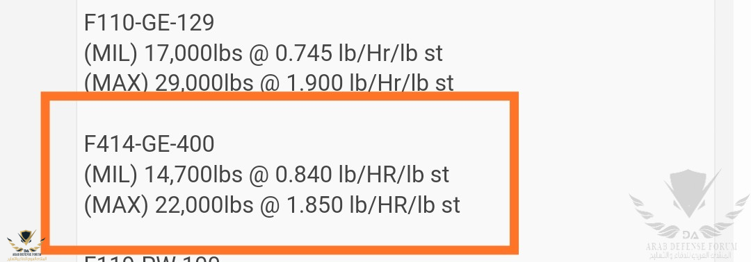 * الاسباب في ذلك متعددة منها مثلا كفاءة المحرك في استهلاك الوقود والتي تتفوق فيها الرافال بامتلاك Specific Fuel Consumption اقل .. كذلك من ضمن العوامل الاخرى هو فارق الحجم والوزن الكبير بين المقاتلتين وامتلاك السوبر هورنيت لمداخل هواء اكبر من الرافال مما يزيد من مقاومة الهواء