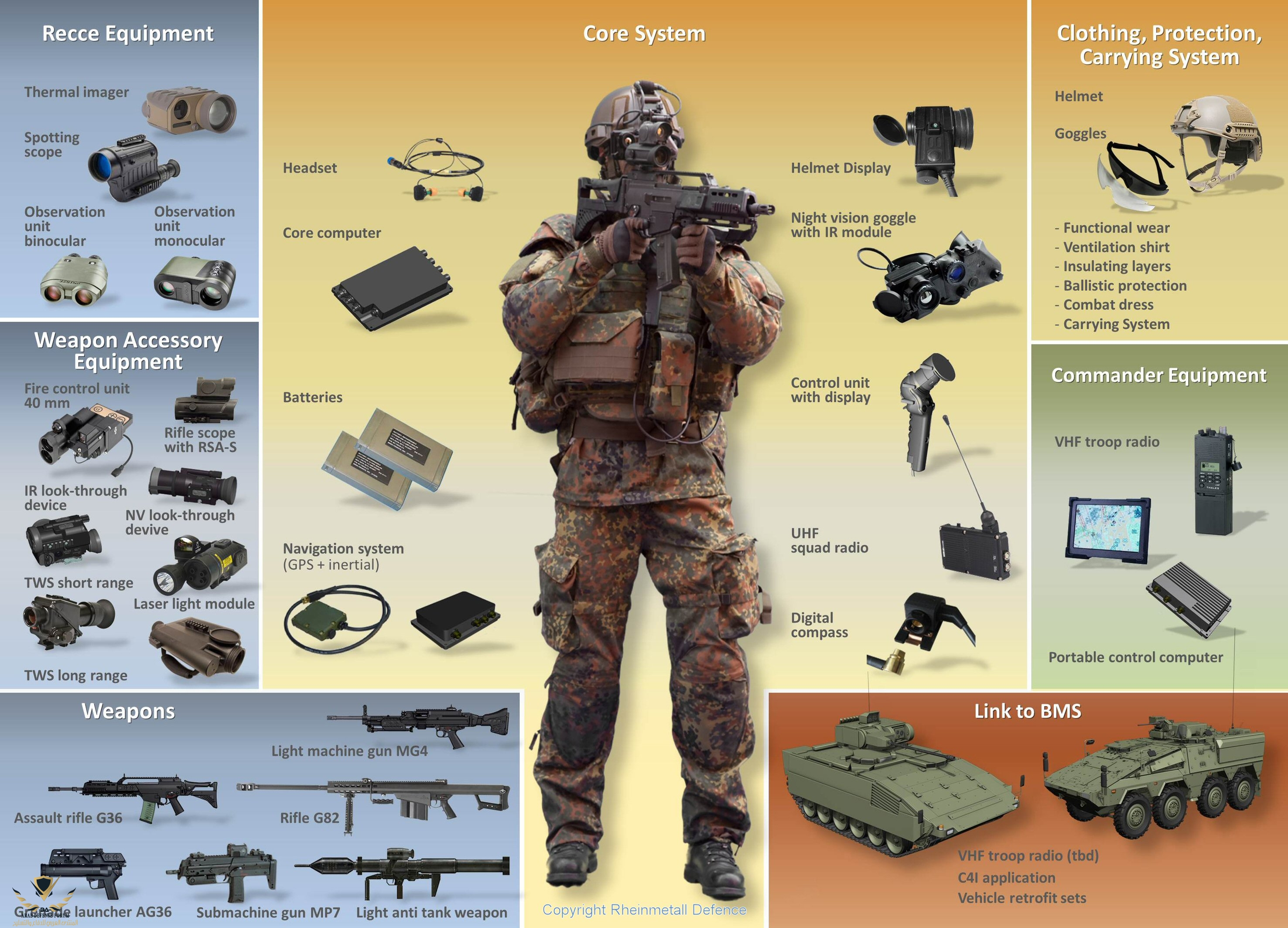 Rheinmetall Argus هو نظام جندي معياري يسمح للقوات بالتواصل بشكل أكثر فعالية على جميع مستويات القيادة ، مع ضمان احتفاظ الجنود بقدراتهم العملياتية عند مستوى الذروة. يمكّن نظام Argus Soldier المحاربين من العمل في أكثر المسارح العملياتية تحديًا من خلال توفير وعي دائم بالموقف حيث ومتى تكون هناك حاجة إليه. يتميز Argus بسهولة التعلم والاستخدام بنفس القدر ، ويتميز بواجهة مستخدم سهلة الاستخدام للغاية لتوفير بساطة تشغيلية وكفاءة ملحوظة للقوات في ساحة المعركة. تم تصميم Argus من قبل الجنود والجنود ، وهو يدور حصريًا حول احتياجات القوات العسكرية في جميع أنحاء العالم.