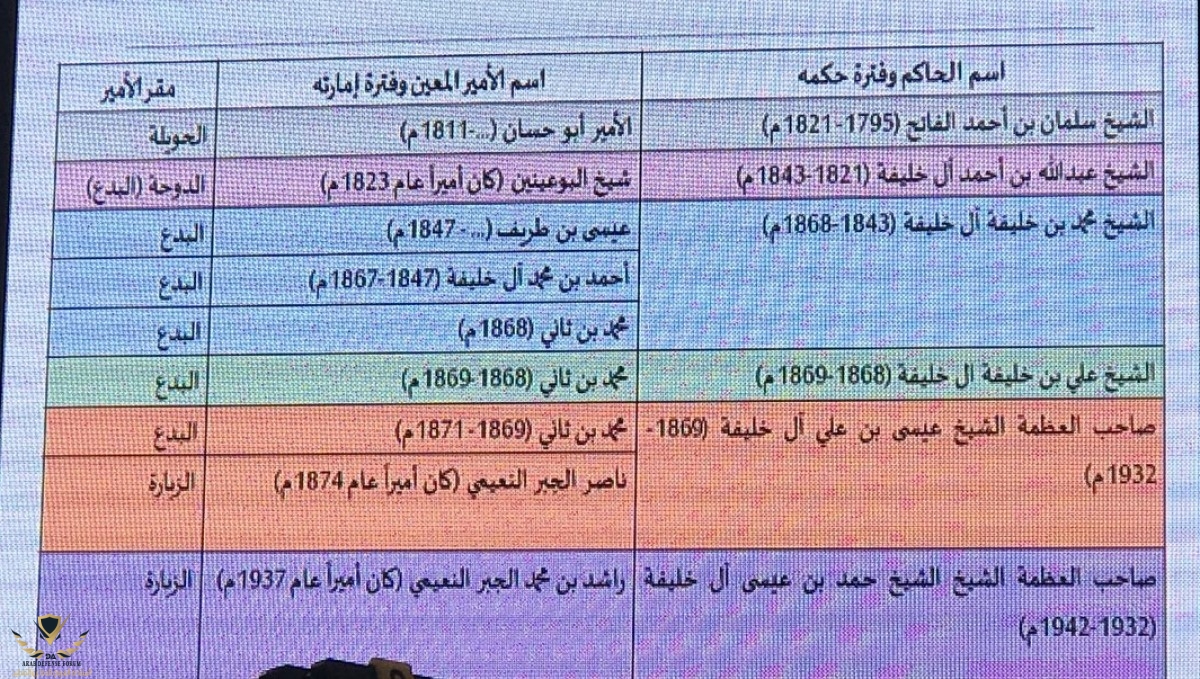 اقرأ أسماء الأمير المعين أو الوالي أو الشيخ وفترة إمارته، ولن تجد في أي إسم "آل مسلم"، لأن آل مسلم خلاص فقدوا السيطرة والنفوذ في قطر منذ تقريباً عام 1780م عند سيطرة آل خليفة على شبه جزيرة قطر بالكامل،