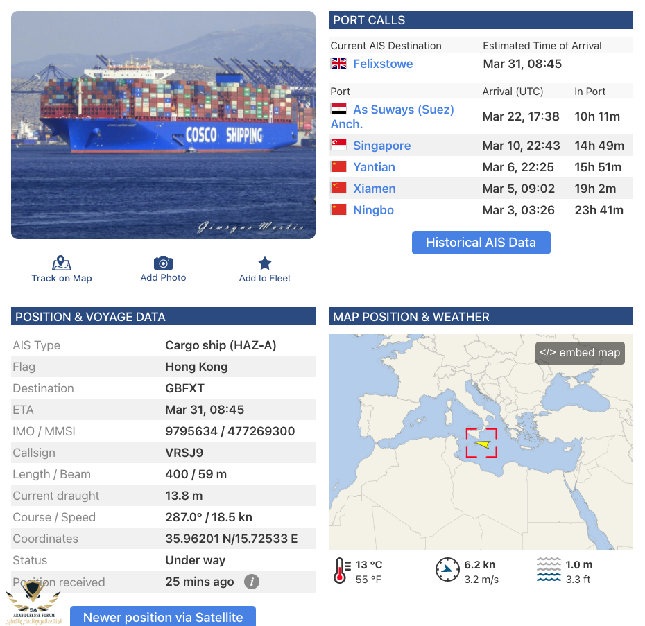 في نفس القافلة سبقت السفينة Ever Given سفينتين نفس الطول تقريبا ولم يحدث لهم اي شئ