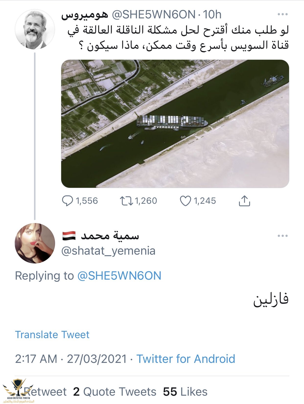 اتمنى حل الموضوع بشكل سريع، قناة السويس تأثيرها قد يمتد لنا في السعودية. والسبب ان لنا خطط طموحة في الاستثمار بموانئنا الغربية، وبالتالي مهم الحفاظ على معدل حركة كبيرة للقناة لان الفائدة ستعود لنا حتما..