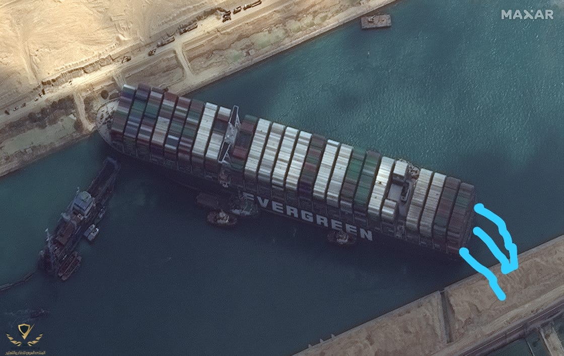 ده فعلا" الى حصل كان مسرع فى اوقات مينفعش يكون كده فيها ماشي على 13.5عقدة والمسموح 7.6 و 8.6 عقدةالوضع فعليا معقد قبطان هندي بكامل سرعته دخل بالسفينه الضخمه في رصيف القناه لتغوص في الرمال المساحة خلفها ضيقه جدا وهامش المناورة ايضا ضيق للسحب من الجانب حتي لا تتحول الكارثة إلي كارثة أكبر وتنقلب السفينه لا قدر الله علي جانبها لذلك الوقت المستغرق حتي الان اراه منطقي جدا
