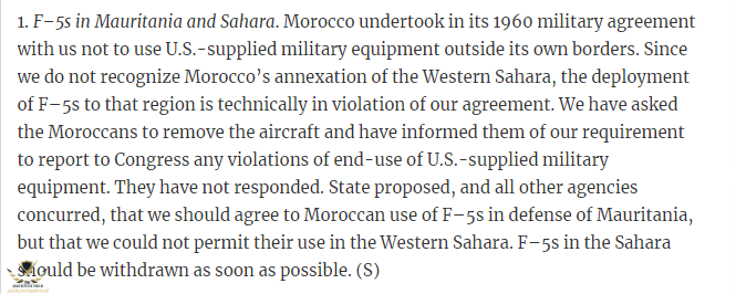 الولايات المتحدة كانت تشك في قدرات الجيش المغربي انداك, البلوك الشيوعي كان اقوى وهزيمة المغرب 90% مؤكدة من طرف حلف وارسو القوي النفود افريقيا.كلامك صحيح أخي الولايات المتحدة كانت في أحد الفترات تفرض حضرا تسليحيا على المغرب ورفضت بيعه الكوبرا وغيرها من الأسلحة لذلك اتجه المغرب إلى الغزالة الفرنسية كبديل للكوبرا. حتى الأف5 المغربية كانت تضغط أمريكا من أجل سحبها وعدم استعمالها ضد المليشيات الشيوعية في حين أنها كانت تسمح باستعمالها من طرف المغرب للدفاع عن موريتانيا ضد هجمات البوليساريو. لكن طبعا المغرب كان يرفض الرضوخ للضغط ولم يقم بسحب الأف5 من الصحراء لكنه عانى من قلة الذخيرة وقطع الغيار.