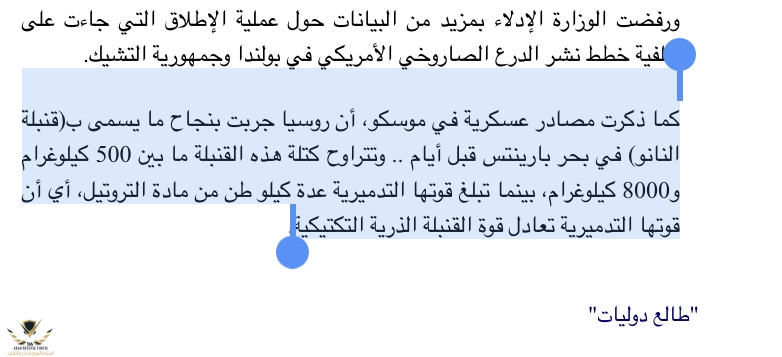 كلامك صحيحالروس صنعو قنبله نانونيه تعادل قنبله تكتيكيه نوويه من النانو وسبق ذكرنا الكلام من كم سنه فرصه مادام معامل الابحاث النانونيه موجوده لدرجة طلاب عرب يدرسون في معاهدنا