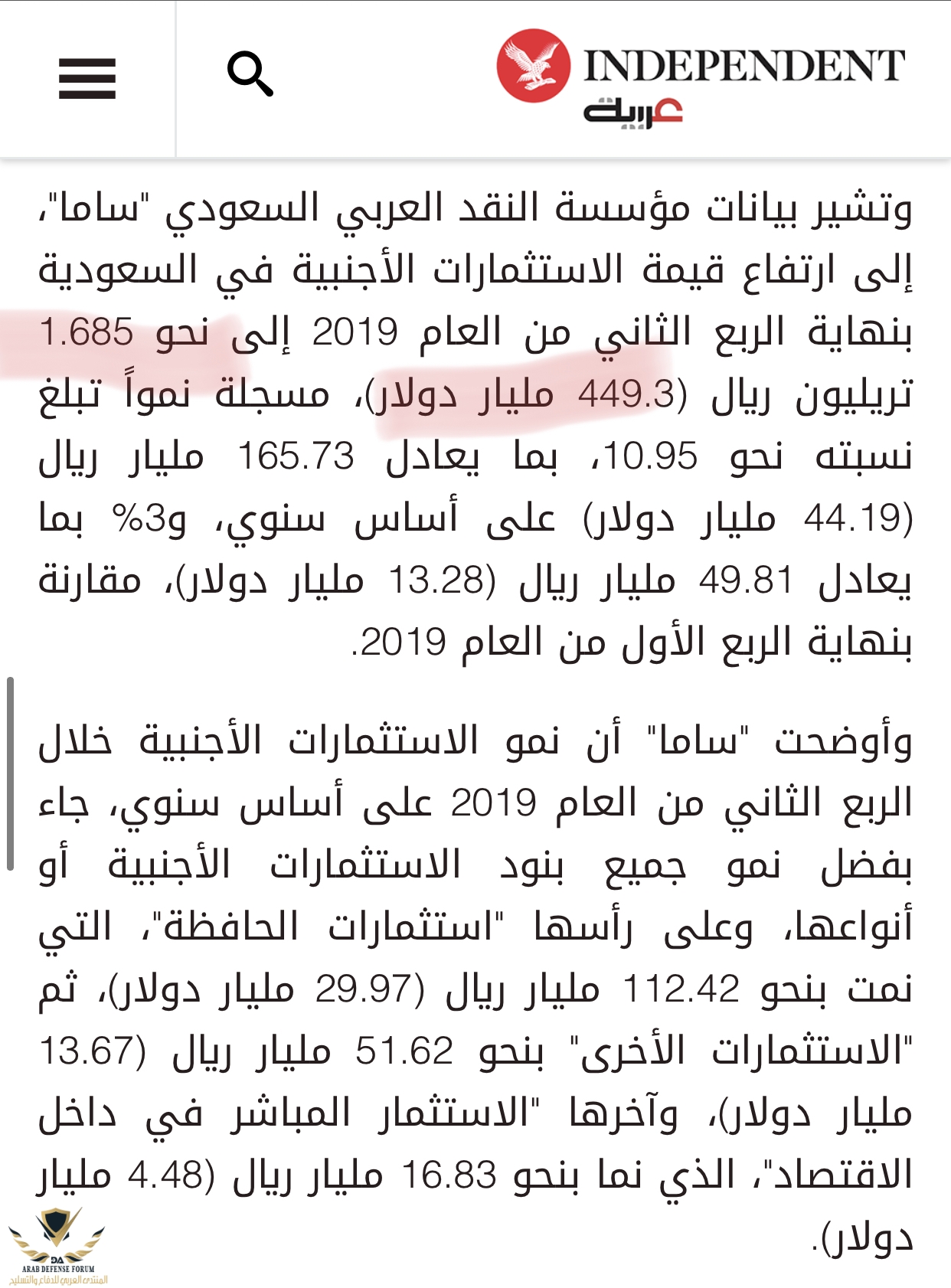 والاستثمار الاجنبي الشرعي حوالي 450 مليار دولار ( تليريون و120 مليار ريال سعودي) حسب قول الصحيفه والله اعلم معا انه الرقم ماعجبني