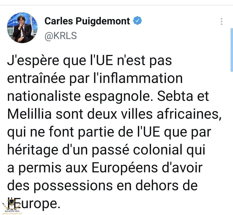 و دولة أخرى لألمانيا لعقد جلسة مجلس الأمن طارئة لتدارس الاعتراف الأمريكي الذي عرى نفاق البعض وراء الكواليس في أوروبا وأزال الأقنعة الشكر كل الشكر لترامب على هذه الورقة التي عرت أوروبا الاستعمارية التي كانت إلى وقت قريب تبتز المغرب لهاته الورقة وراء الكواليس الآن اللعب على المكشوف وهو ما فعلته اسبانيا منزعجة من الاعتراف الأمريكي بمغربية الصحراء وقامت بالآصرار والاتصال بإدارة بايدن قصد تغيير موقفها لكن الجواب أتى لهم الامس من الخارجية الأمريكية بنشر الاتفاق كامل للاعتراف بمغربية الصحراء وهذا هو سبب سعار اسبانيا ومعها بعض الدول الأوروبية لان الآن فقدت الورقة التي تستطيع بها الضغط على المغرب