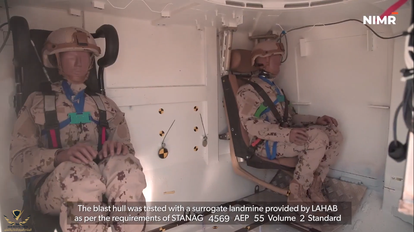 الحديث هنا عن نوع اللغم المستخدم وهو من إنتاج لهب لفل ٢ . أما العربة نفسها في الإصدار الجديد فتوفر حماية بمستوى STANAG 4569 level 4 هذا من كلام أحد موظفي edge.