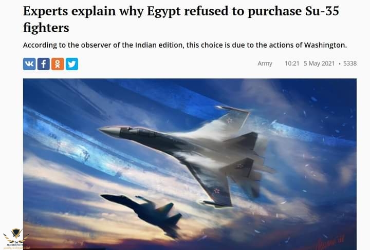 وجاء في ذلك المقال أن مصر وقعت صفقة مع روسيا لشراء أكثر من 20 طائرة مقاتلة من طراز سوخوي 35 متعددة المهام.