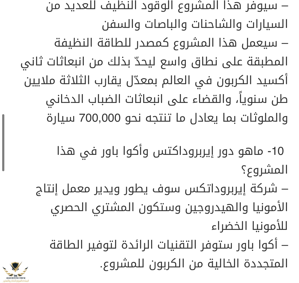 وبموجب هذه المذكرة ستقوم الشركة باستثمار 40 مليار دولار خلال السنوات العشر القادمة لإنشاء محاطات للطاقة الشمسية والهوائية بقدرة تصل 30 جيغاوات، ستمكن من إنتاج الهيدروجين الأخضر.
