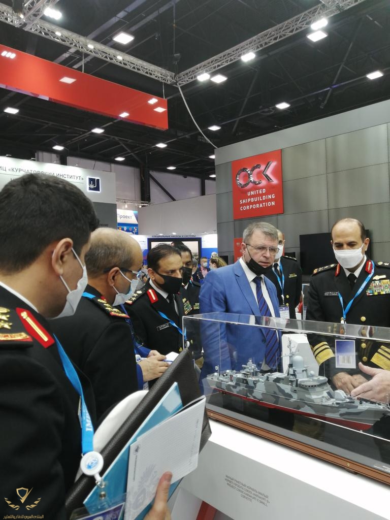وقام معالي قائد القوات البحرية والوفد المرافق له بجولة في المعرض، شملت عدداً من أجنحة ومنصات للشركات الوطنية الروسية المتخصصة في مجال الدفاع البحري والاطلاع على احدث المعدات والتقنيات الدفاعية البحرية، وكذلك جولة على السفن الحربية المشاركة في المعرض.