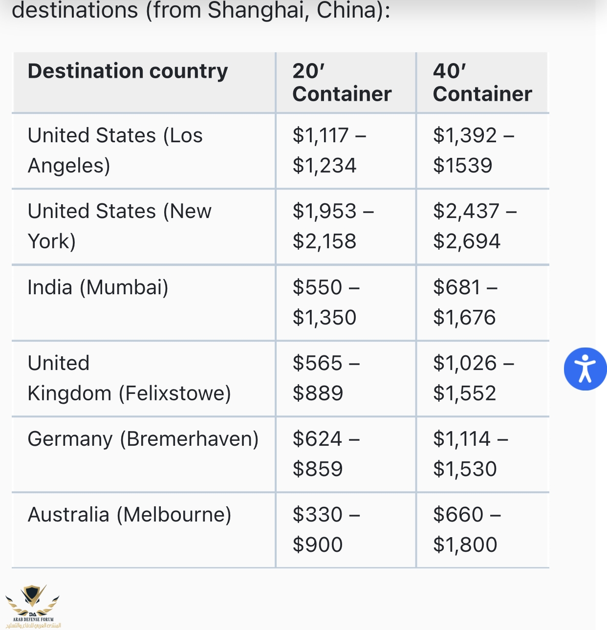 وهنا تقول ان الاسعار ارتفعت في أمريكا واروبا بس . مع العلم ان في تسعيرتك القديمه مافيها ارتفاع بس انك محشور ومنت قادر ترد فبدية تنفي كلامك وتنسحب.وليه ارتفع سعر الحاويات لامريكا واوربا ؟