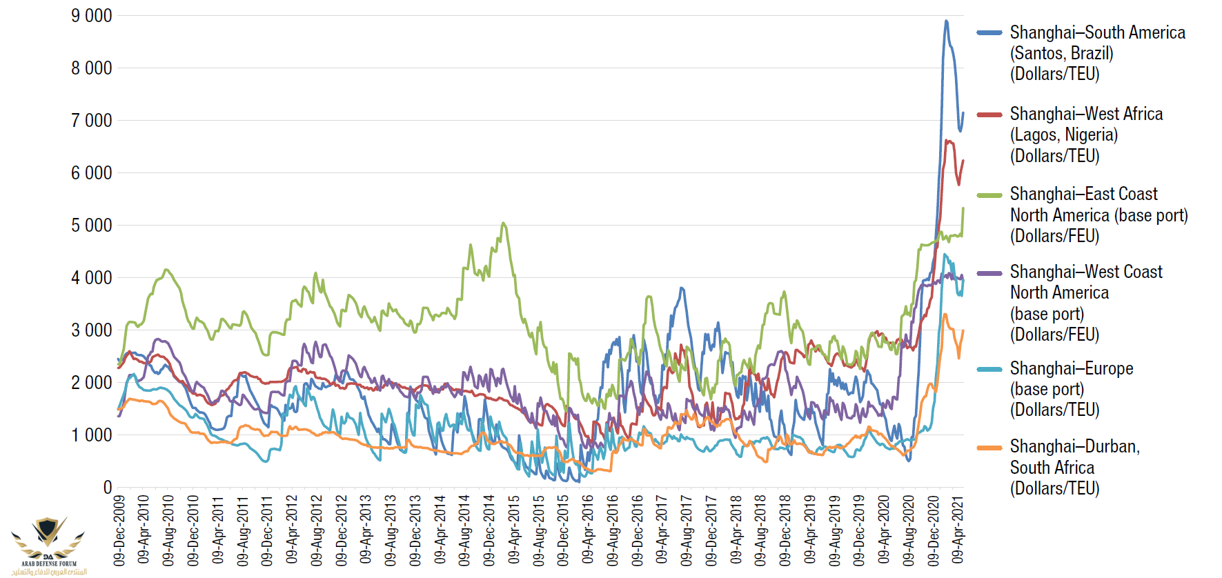 والرسم البياني الاخير لاسعار الشحن .
