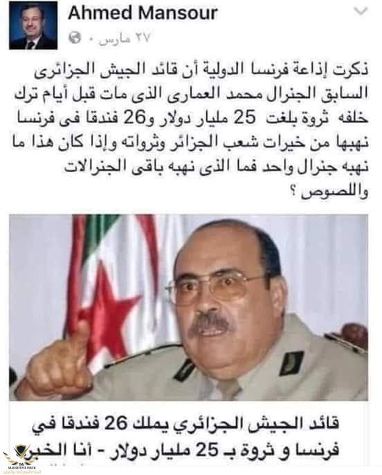 25 مليار دولار ثروة الجنرال الراحل محمد العماري في فرنسا ويمتلك 26 فندق وحانة​