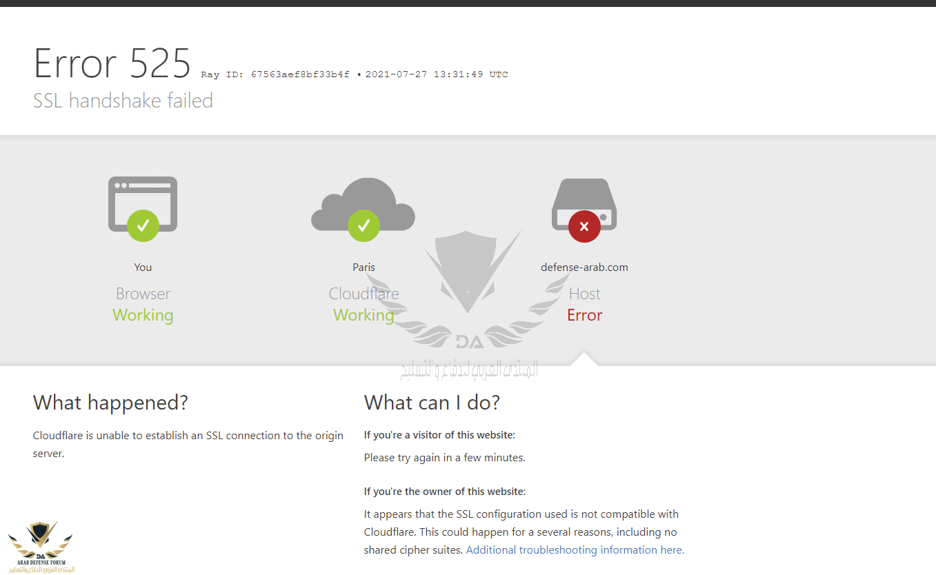 Error 525الرجاء ارفاق صورة للخطأ الظاهر.