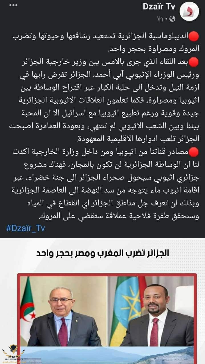 لا. محدش قال كده. ومش لازم تكون الجزاير صد اثيوبيا. بل من اصول اللعب انها تكون متعاطفه معاها.لماذا يجب ان تكون الجزائر ضد اثيوبيا لكي تقف مع مصر. ممكن تقف مع مصر بعدة طرق و حل الملف كما قال السيسي لن يكون عسكري بل سياسي و هو كل مرة يكرر الكلام بان الحل يجب ان يكون بالتفاوض. اعتقد ان الامر اخذ اكثر من حقه. و عدة جهات استعملته لخلق ازمة لمصر و اثيوبيا