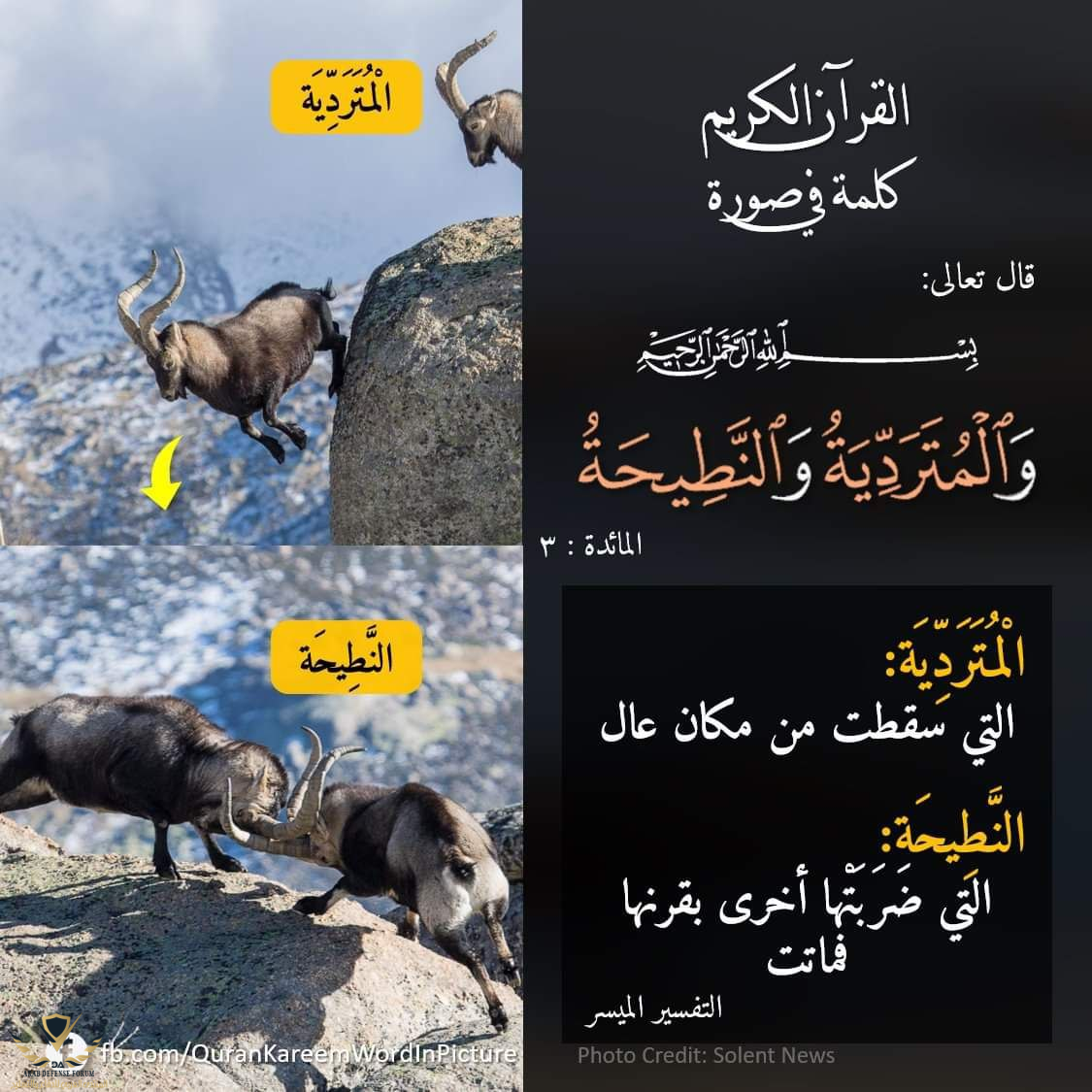 التفسير الميسر: حرَّم الله عليكم الميتة، وهي الحيوان الذي تفارقه الحياة بدون ذكاة، وحرَّم عليكم الدم السائل المُراق، ولحم الخنزير، وما ذُكِر عليه غير اسم الله عند الذبح، والمنخنقة التي حُبِس نَفَسُها حتى ماتت، والموقوذة وهي التي ضُربت بعصا أو حجر حتى ماتت، والمُتَرَدِّية وهي التي سقطت من مكان عال أو هَوَت في بئر فماتت، والنطيحة وهي التي ضَرَبَتْها أخرى بقرنها فماتت