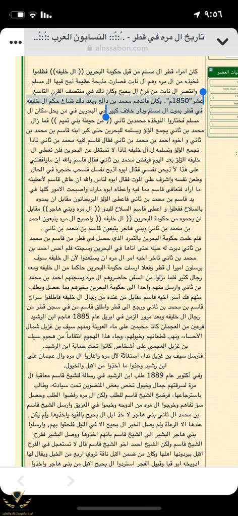 أستاذي الفاضل نمر، من المضحك والمثير للسخرية، أن من يقولون عنه بأنه مؤسس قطر "قاسم بن ثاني" لم يولد في قطر ولم ينشأ ويترعرع في قطر، ووالده ووالدته كانا من أهالي البحرين،