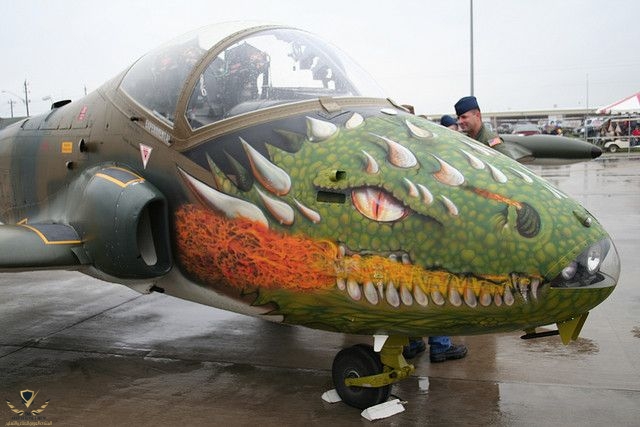 وبالقرن العشرين زين طياري المقاتلات طائراتهم برسومات اسنان اسماك القرش لتناسبه من تصميم الطائرات كنوع من الحرب النفسية