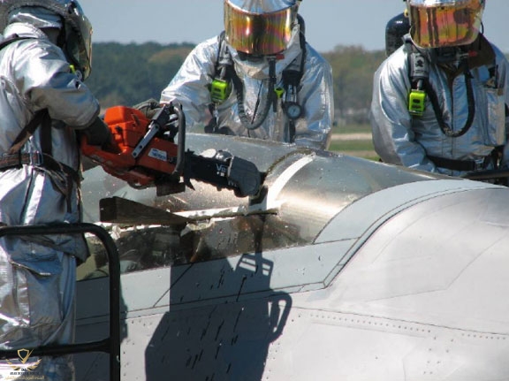 رجال الإطفاء يحلون مشكلة طائرة الجيل الخامس