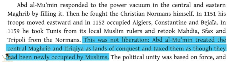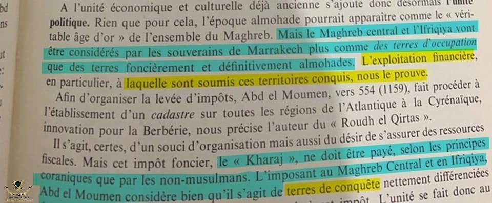 و كدلك نقطة مهمة الزيانيين و الحفصيون مغاربة و كانوا خدم للموحدين بعد الضعفعبد المومن الGومي وحكام مراكش (الموحدين) عاملوا المغرب الأوسط "الجزائر" وأفريقية "تونس" كأراضي فتح-غزو ، فرض عليها الضرائب كأنها احتلت للتو من طرف المسلمينمشاهدة المرفق 556263