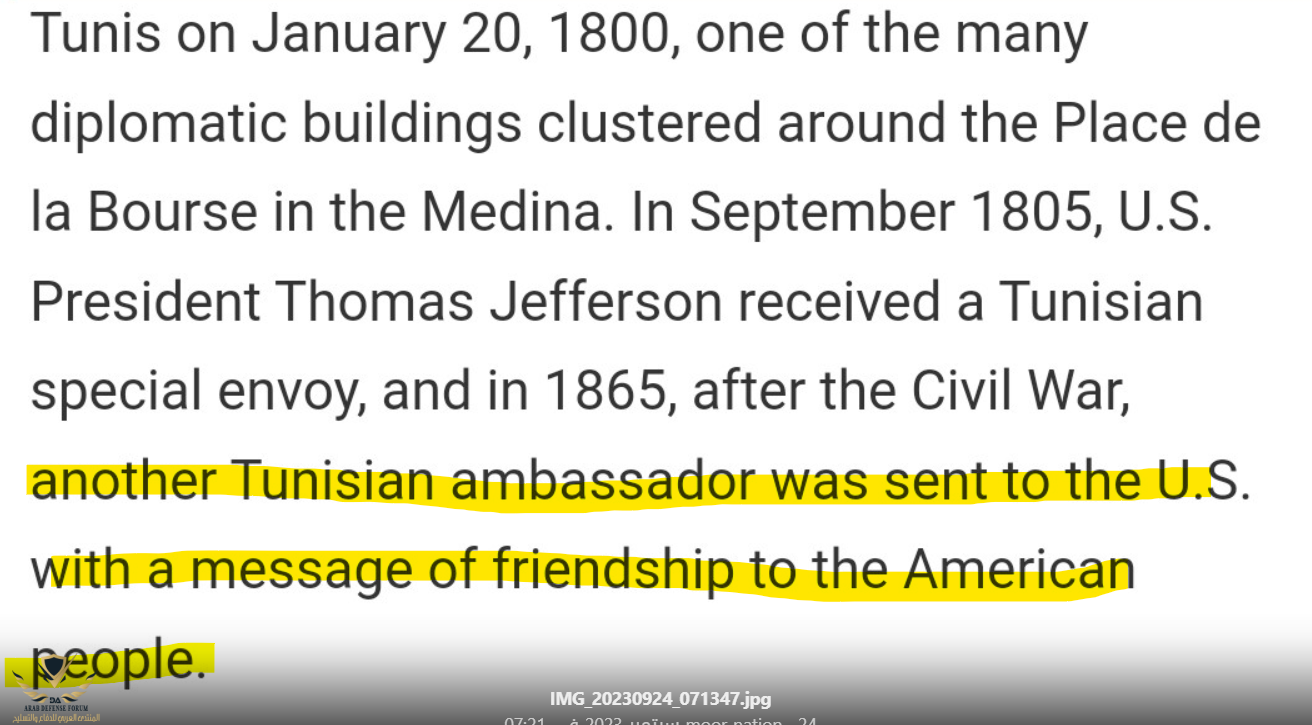 ولكن تونس كانت تابعة للعثمانيينو الصورة التي ارفقتها انا للسفير التونسي في بريطانيا و ليس الولايات المتحدة