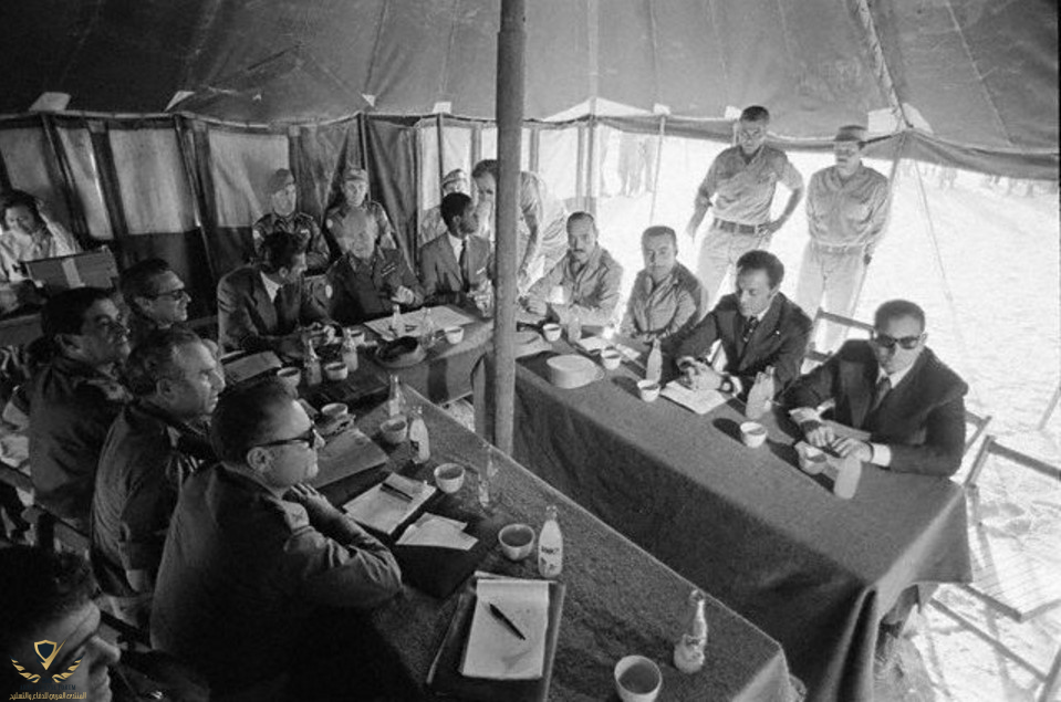 صورة لا تحتاج لتعليق وهي لإتفاق وقف إطلاق النار ويلاحظ خصمي الحرب وجها لوجه !! خصم يرشف الشاي ويوزع الإبتسامات على كاميرات الصحافة وآخر خجل ومذهول من نتائج المعركة ويكتفي بنظرة عابسه !!!!!