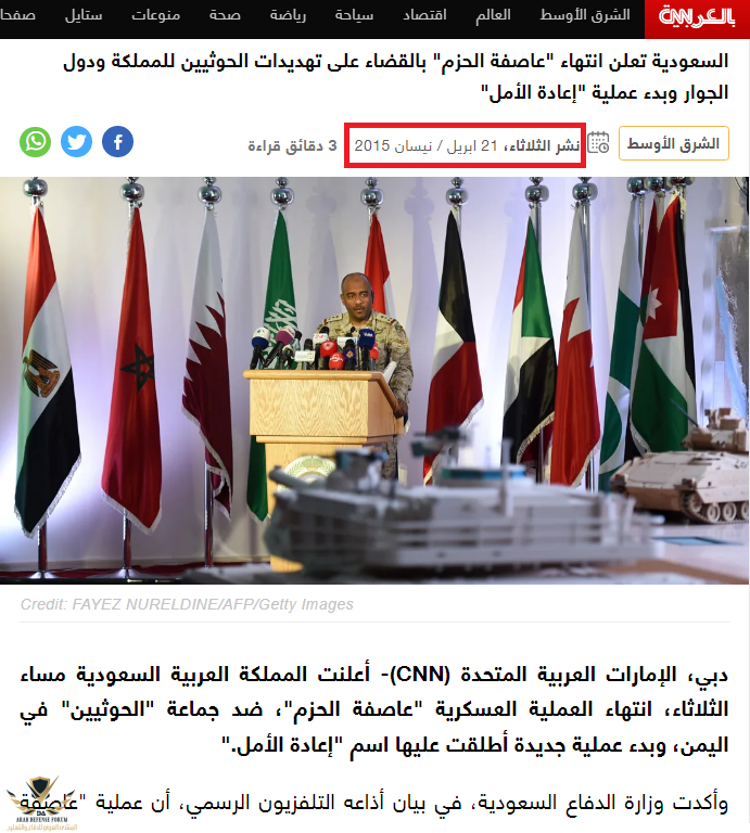 تم اعلان انتهاء عاصفة الحزم في 21-04-2015م اي بعد اقل منشهر من قيام عاصفة الحزم