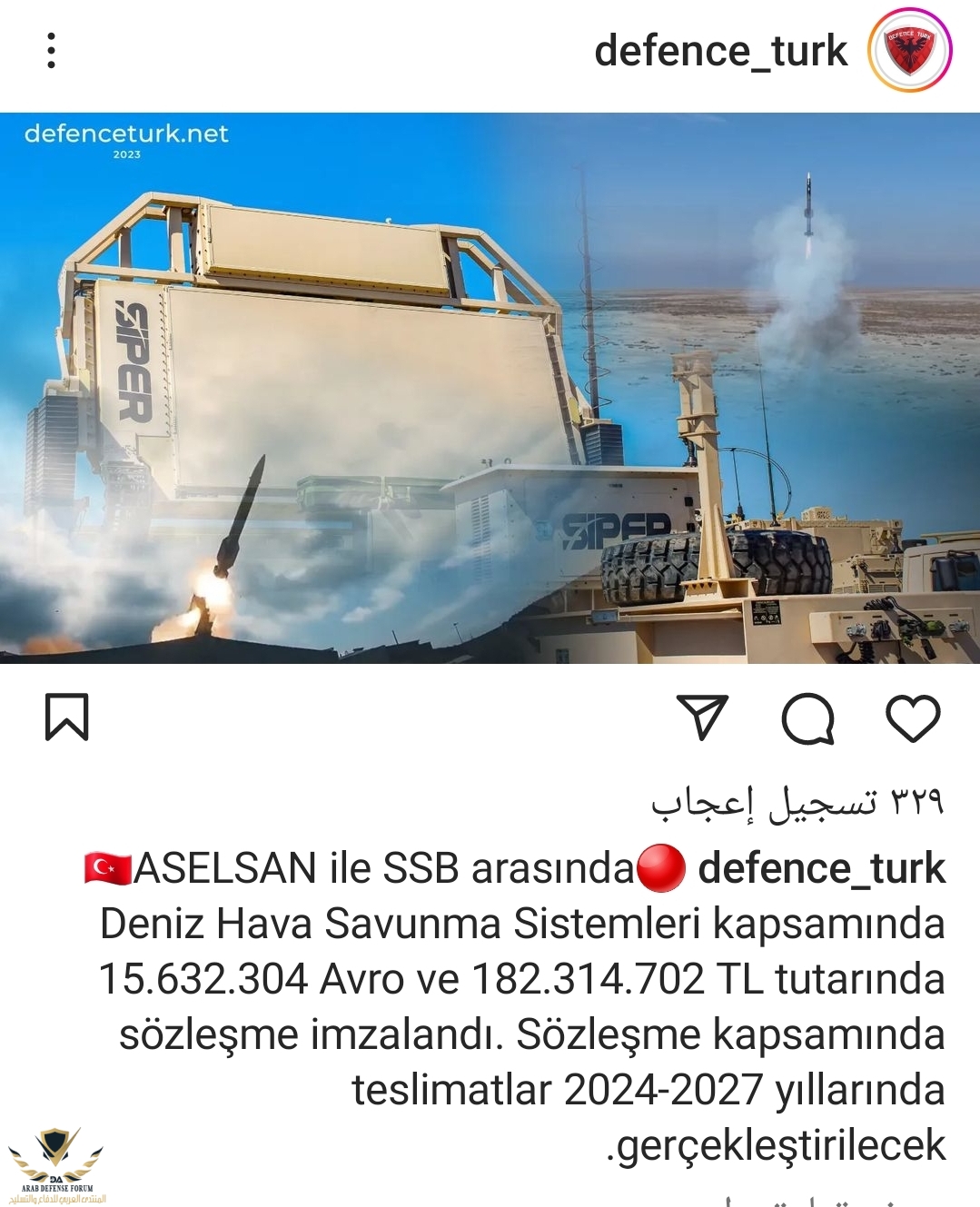 15 مليون ؟ مش قليل ؟توقيع عقود توريد للمنظومة بقيمة 15 مليون يورو بين وزارة اادفاع وssb وتسليم بين عامي 2024 و 2027مشاهدة المرفق 657486
