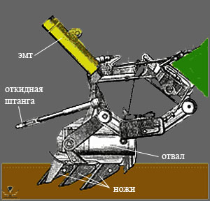 يا شيخ أنت من وين بتجيب هالأسامي !!!! شو يعني شيول (ربما تقصد اسطوانات هيدروليكية) ؟؟؟ عموما كما ذكرت، هذا نظام يدعى EMT لتحفيز الألغام المغناطيسية على الإنفجار من مسافة آمنة نسبيا قبل أن يصلها هيكل الدبابة.