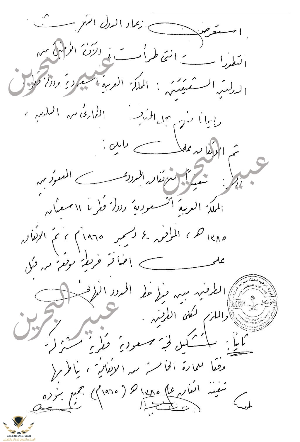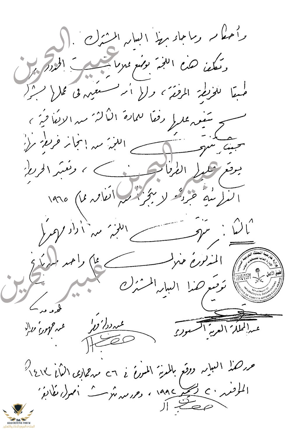 2 - من الملاحظ أن توقيع الأمير نايف وتوقيع حمد بن جاسم على جميع الصفحات الثلاثة.