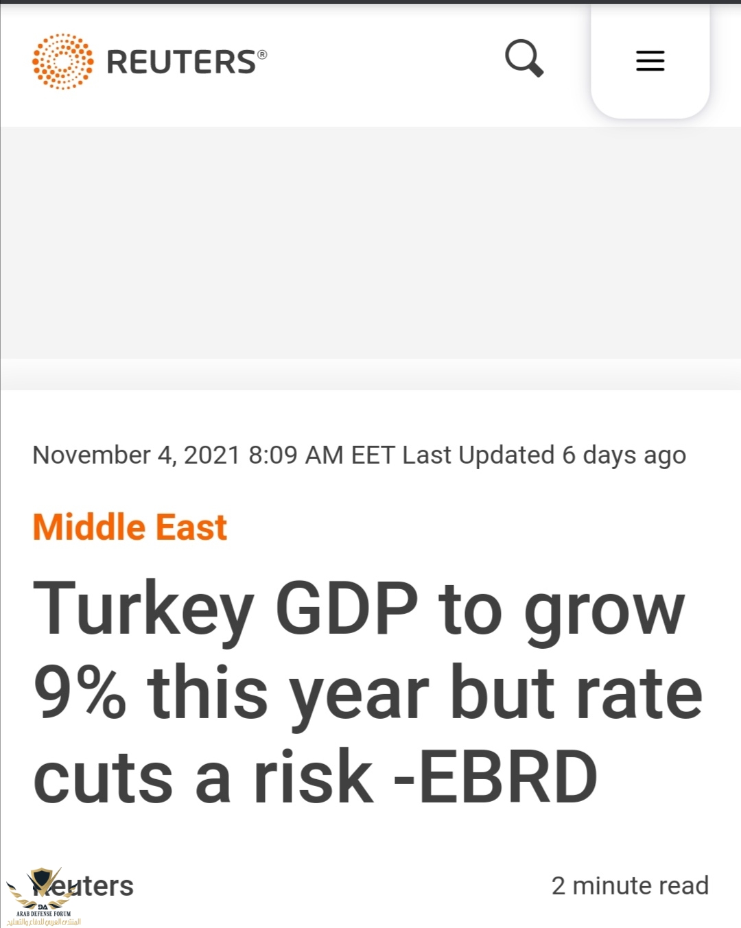 النمو بعد الانهيار جراء كورونا ليس نمواً ايجابيا بل يسمى تعافي .. فالناتج التركي هبط من 960 الى 720 مليار تقريباً جراء الجائحة وسيتعافى الى نصف الهبوط حسب الارقام المذكورة ..