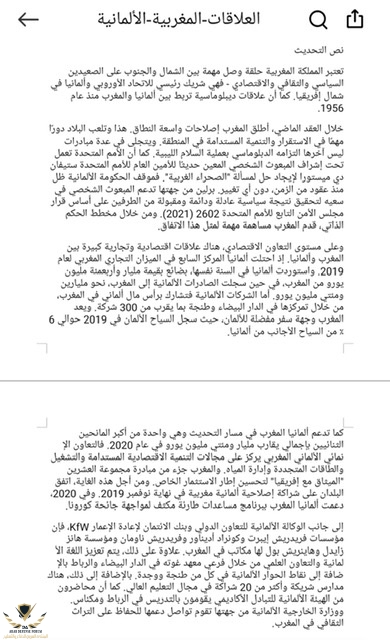 الترجمة الكاملة لتحديث العلاقات الألمانية المغربية على الموقع الرسمي لوزارة الخارجية الالمانية