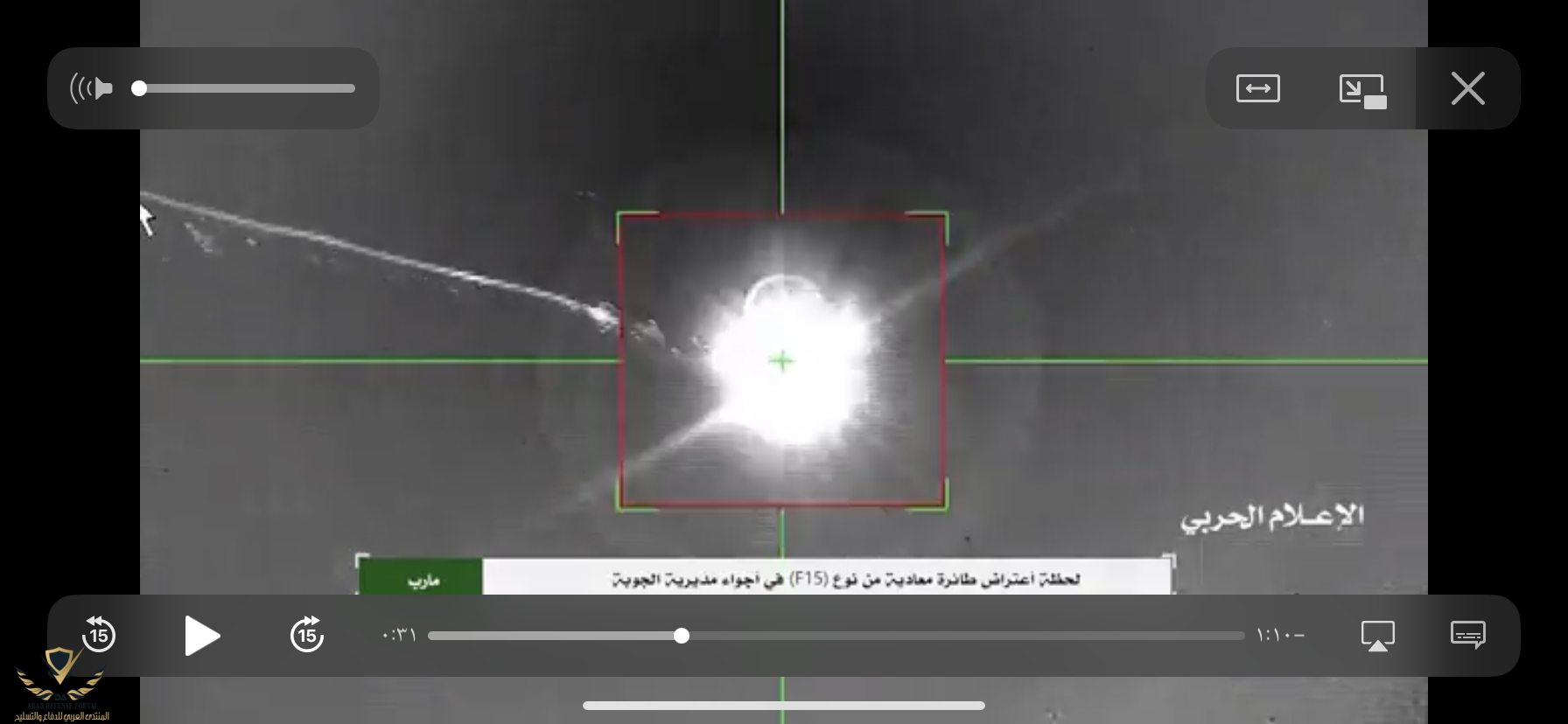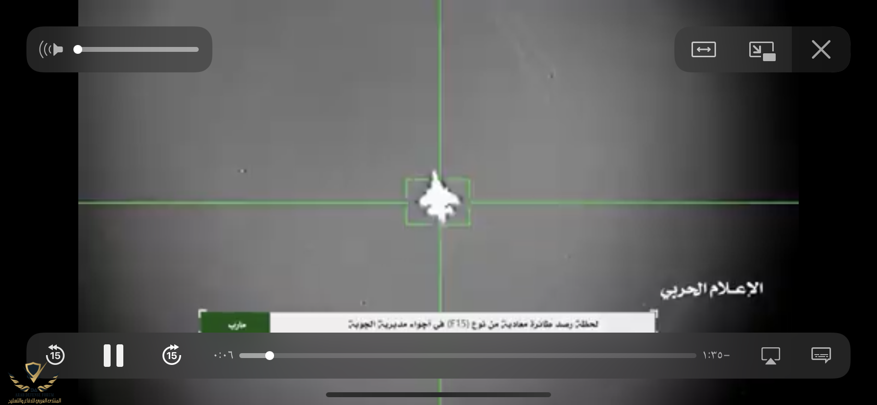 مطاردة مزعومة بين سام ٦ و اف ١٥ وتم النجاه بواسطة المشاعل الحرارية