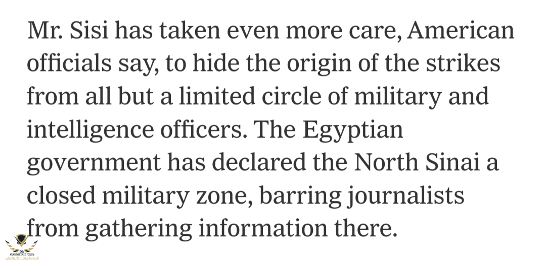 * ويقول المسؤولون الأمريكيون ان السيسي اخفى مصدر الضربات عن الجميع باستثناء دائرة محدودة من ضباط الجيش والمخابرات