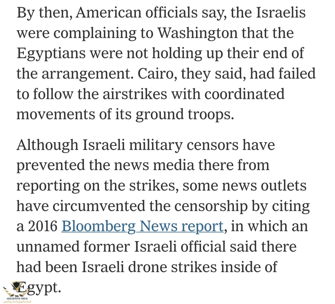 مسألة التدخل الصهيوني في سينا ثابثة بدلائل ملموسة/موثقة .. نيويورك تايمز استند تقريرها إلى سبعة مسؤولين أمريكيين/بريطانيين شاركوا في الصراع .. والقوات الأمريكية لها تواجد على الارض