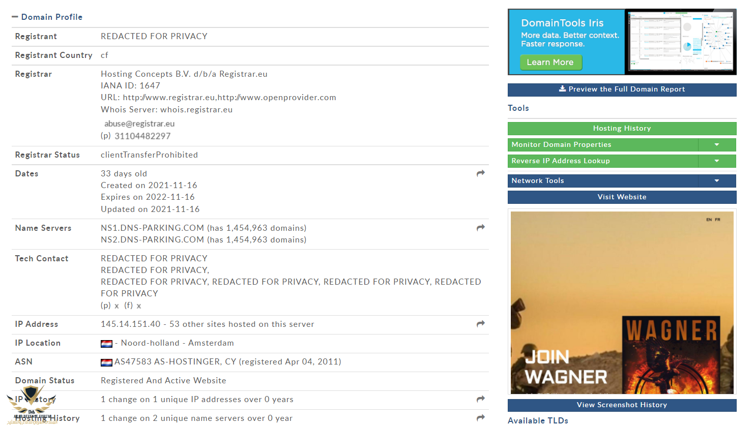 هذا حساب الفاغنر الرسمي باللغة الإنجليزيةموقع عمره 33 يوم و دومين مسجل في امستردام