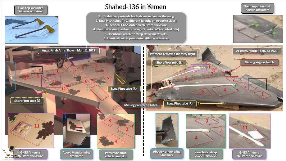 لكن شاهد 136 الإيرانية أو وعيد نسخة الحوثي هي ذخيرة تصحح موقعها باستخدام INS (نظام الملاحة بالقصور الذاتي) و GPS (نظام تحديد المواقع عبر الأقمار الصناعية) وأقرب لبرنامج طيران مشابه لصاروخ كروز الذي يستهدف هدف أرضي ثابت.
