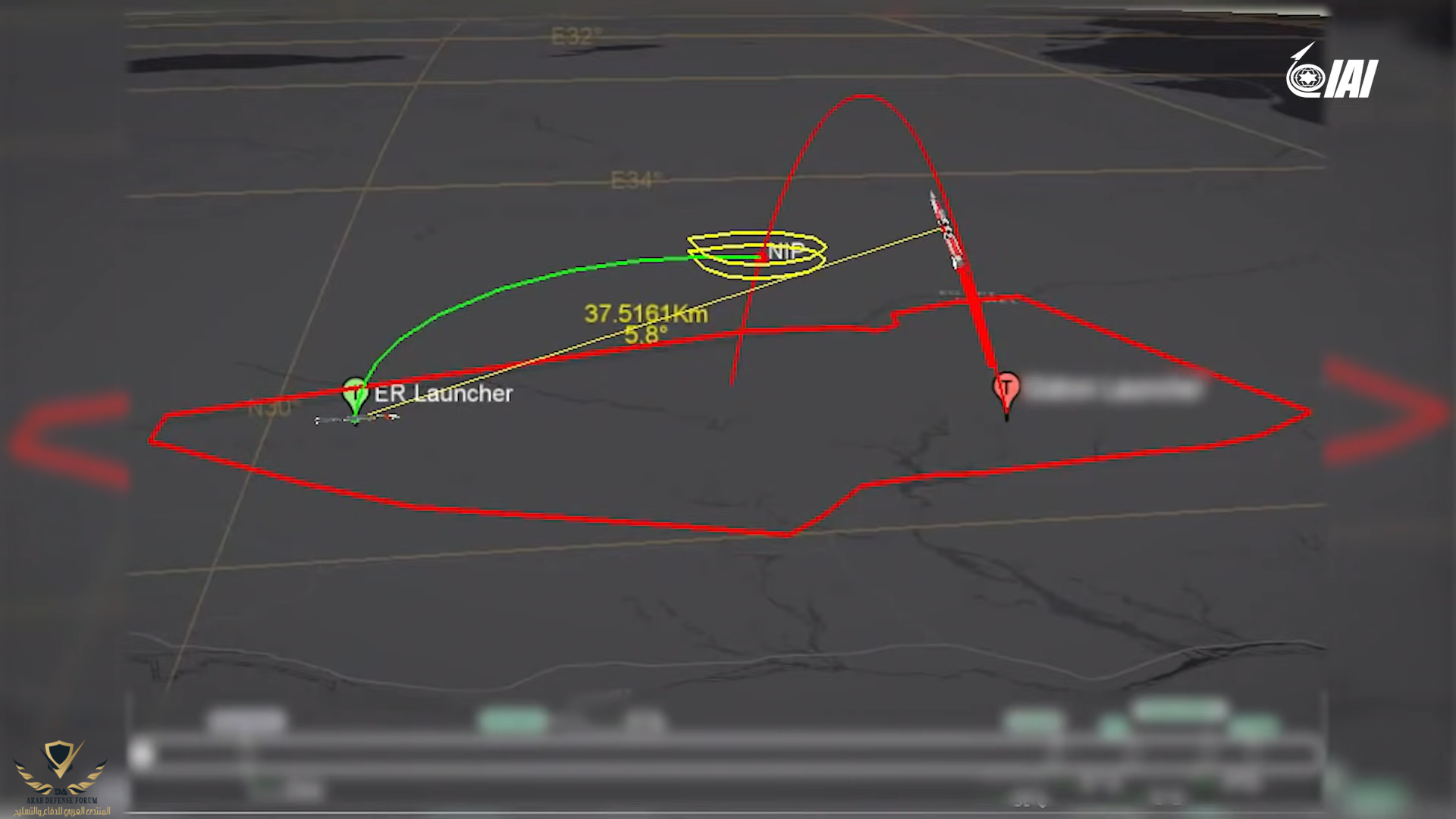 تظهر نقطة انطلاق الهدف المعادي ، مسار ، مكان السقوط