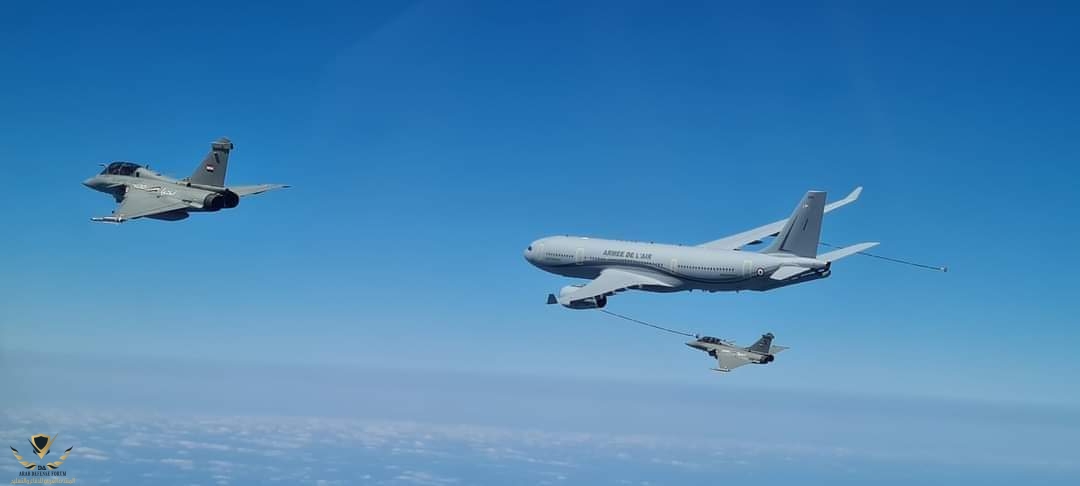 طائرة تانكر فرنسية من نوع MRTT تقوم بتزويد مقاتلات رافال مصرية بالوقود في تمرين في وقت سابق