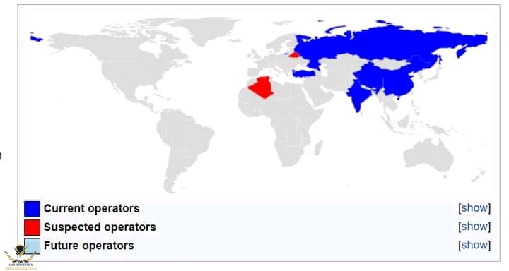 خريطة تظهر 3 فئات للدول الخاصة بالاس 400 المشغلين و المشتبه بهم و المشغلين المستقبليين