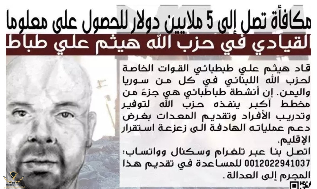 أي معلومات تقود إلى اعتقال هيثم علي طبطبائي.